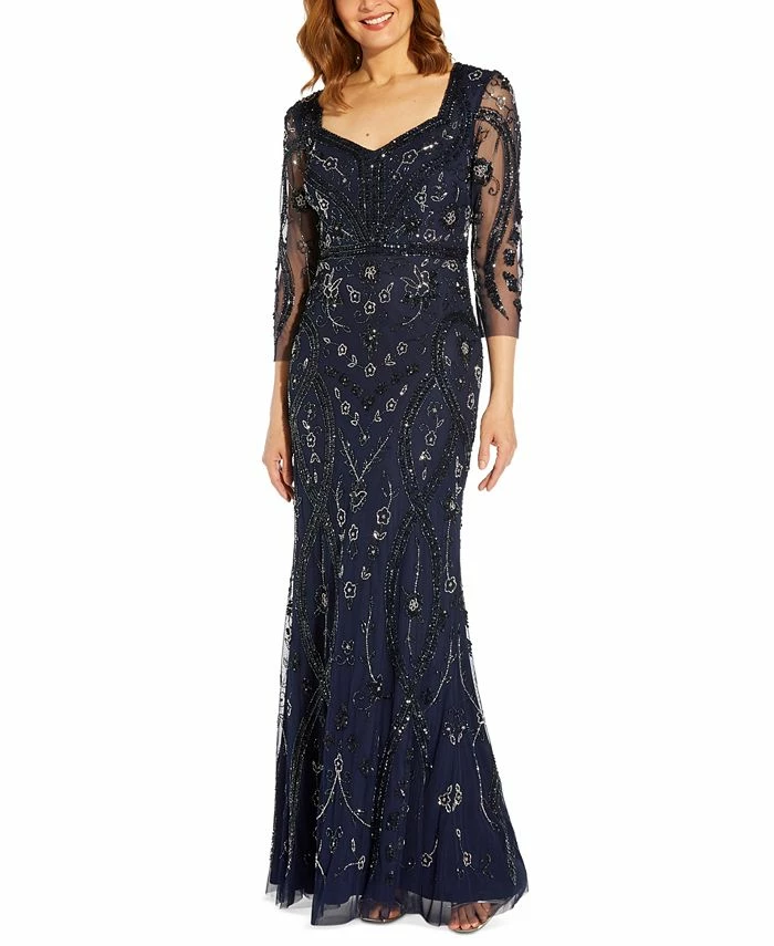 Look stunning from all angles in Adrianna Papell’s beaded gown, showcasing a cutout back.