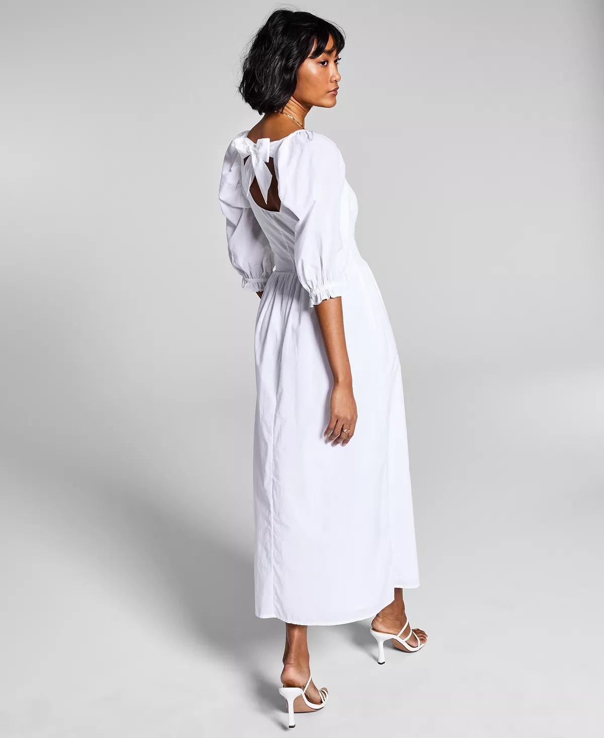 And Now This Women’s Cotton Smocked Puffed Sleeve Midi Dress