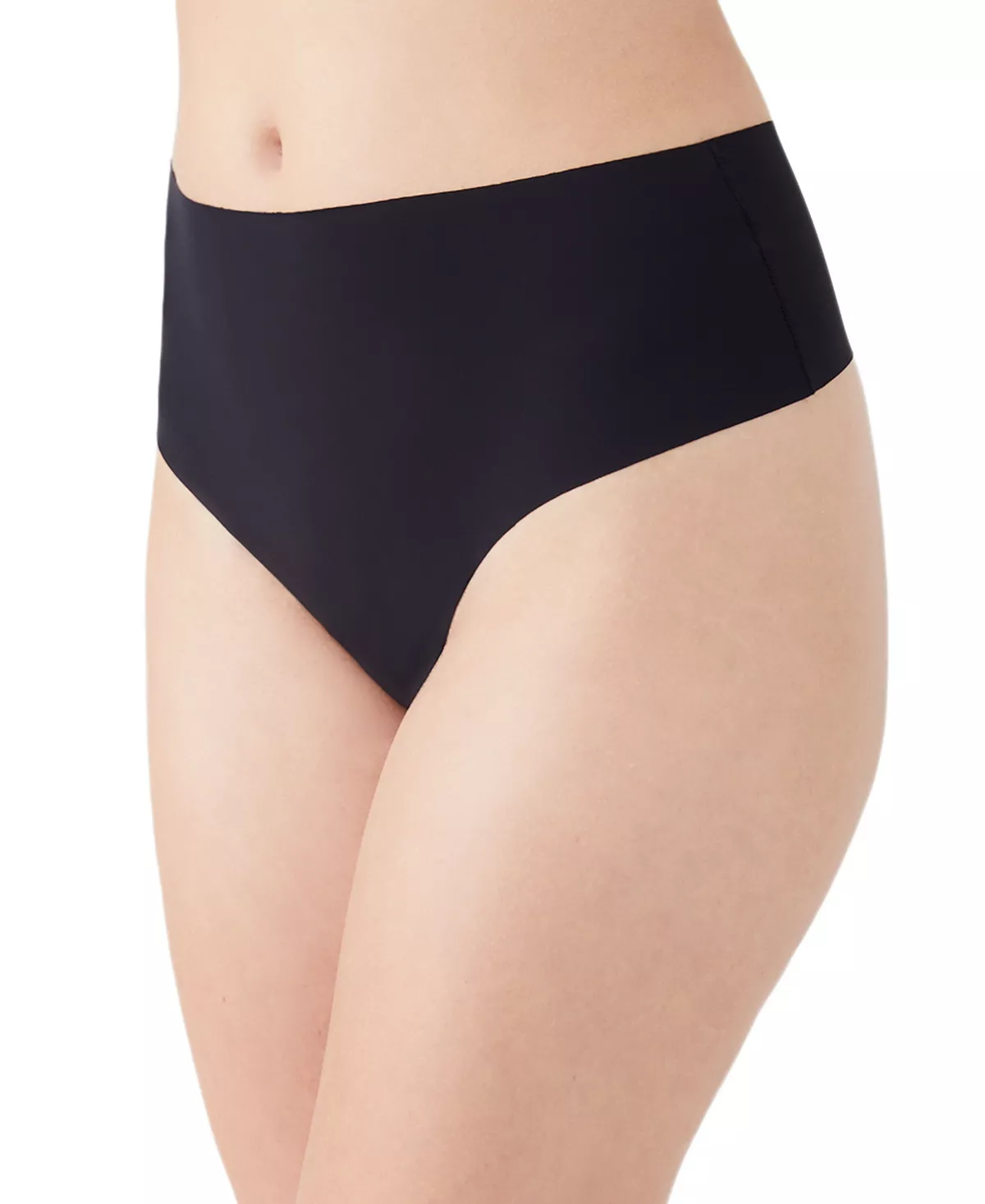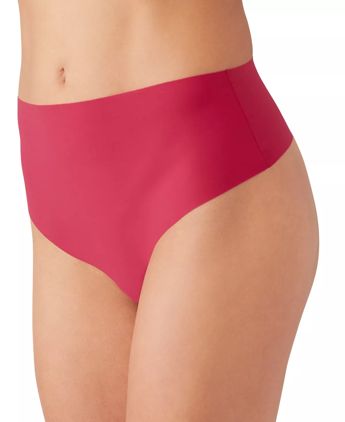Soft and sleek, b.tempt’d’s high-waist thong offers a clean look under clothing.