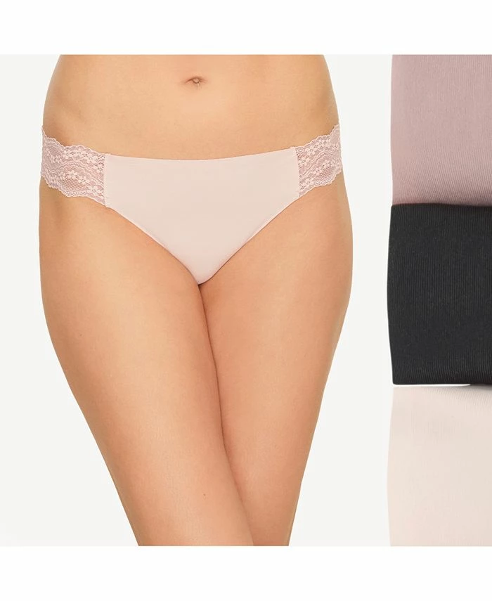 This chic three-pack of thong underwear from b.tempt’d brings a clean look under clothes with a lightweight, clean-cut fabric that’s finished with pretty lace detailing.