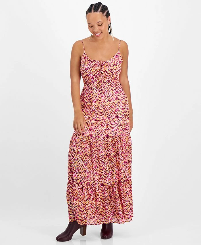 A fashion-forward cutout adds interest to the airy, tiered silhouette of this maxi dress by Bar III. Style it with pretty sandals for an effortless look.