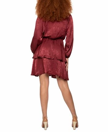 Celebrate the magical moments in this airy chiffon dress from Black Tape, a long-sleeve pick designed with a faux-wrap front.