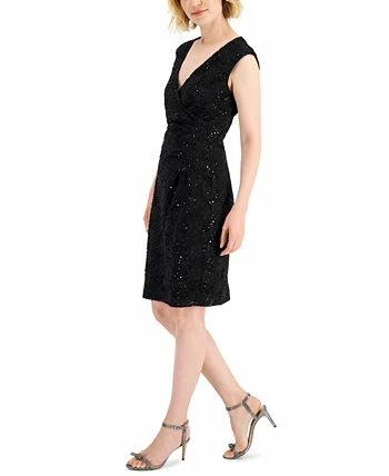 A sequined lace overlay enhances the pretty silhouette of Connected’s must-have cocktail dress, a stunning look with strappy heels and a bright clutch!