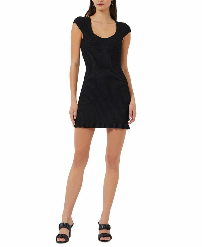 A sleek ribbed knit defines this curve-hugging bodycon dress from French Connection, a modern mini silhouette finished with chic cap sleeves and a romantic ruffled hem.