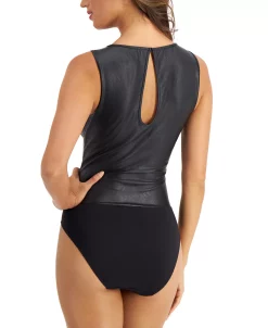 A chic, sleek look makes this faux leather bodysuit from I.N.C. International Concepts your new layering fav for that special top or dress.