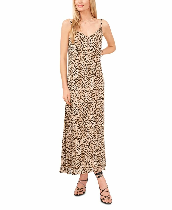 Keep current with this look from Vince Camuto, an effortless slip dress in an easy midi silhouette and a fierce animal print.