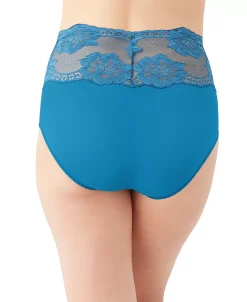 A pretty pinch-free lace waist with geometric and floral design hugs the body with a romantic touch in Wacoal’s soft and comfy briefs. Style #870363